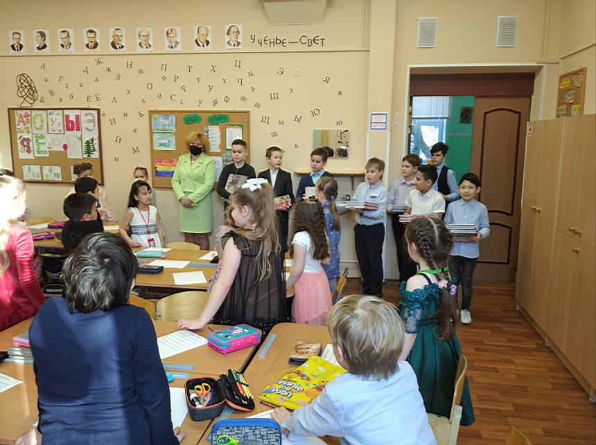 Доброй традицией в московских школах стало ежегодное вручение ученикам первых классов подарочных книг от Мэра столицы Сергея Собянина. В УП «Плутон» учащиеся 4-х классов вручили первоклассникам книгу «Москва – город – победитель». С приветственным словом к ребятам обратилась заместитель директора школы Миронова Нелли Станиславовна. Совсем недавно первоклашки закончили изучение Азбуки и теперь самостоятельно прочитав книгу Эдуарда Веркина, написанную в форме дневника московского школьника, в чьё детство ворвалась война, смогут увидеть далёкую войну глазами сверстника, узнать о том, как Москва одолела страшного врага.