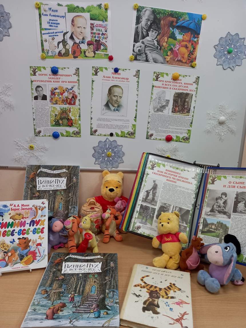 В библиотеке СП «Сатурн» проходит книжная выставка, посвященная 140-летию со дня рождения английского писателя Алана Александра Милна, автора любимой всеми сказки «Винни Пух и все-все-все».